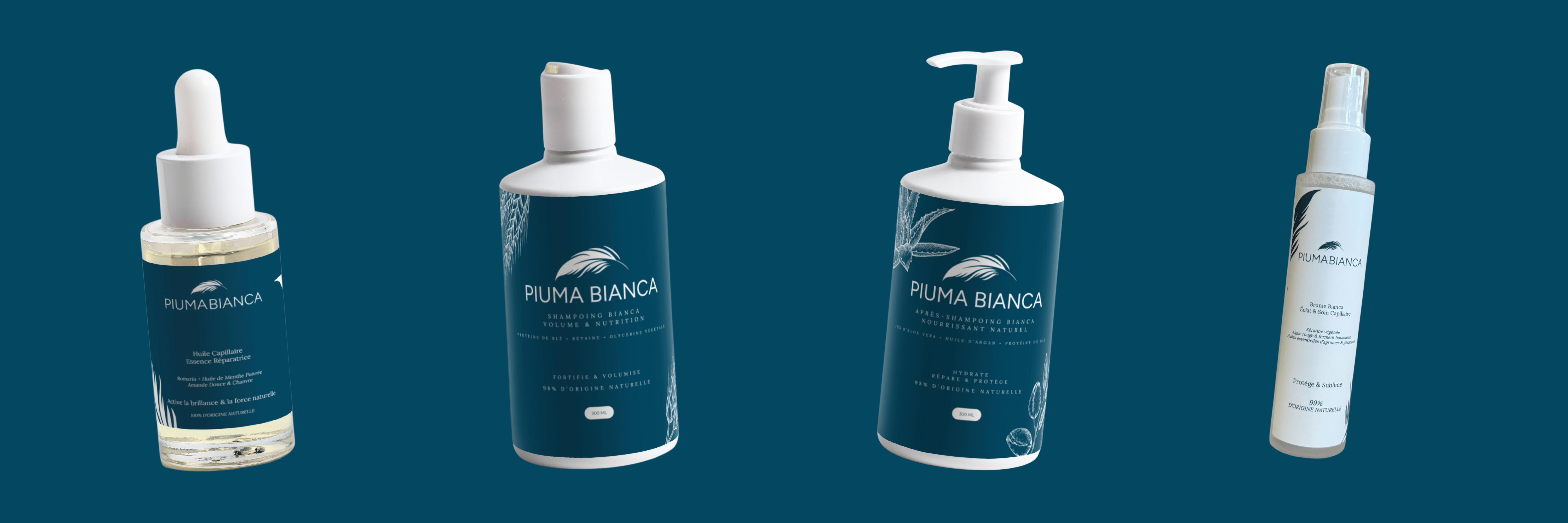 Chez PIUMA BIANCA, nous mettons un point d'honneur à offrir des soins d’exception avec des compositions parmi les plus naturelles et respectueuses du marché. Nos produits sont conçus pour répondre aux besoins de votre peau et de vos cheveux sans compromis sur la qualité.